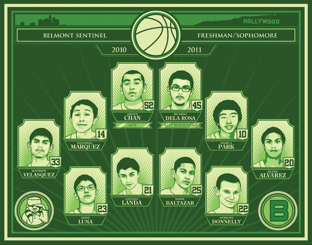 10 digital illustration project for Belmont basketball Fresh/Soph team. Inspired by Hydro74 and Shepard F.