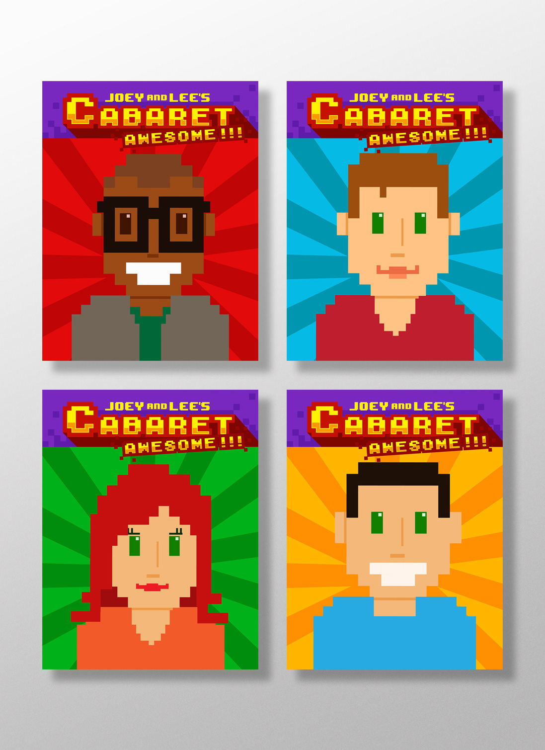 Quick commissioned poster design for talented people from Cabaret Awesome at Hollywood, CA. The whole concept was inspired by 8-bit graphics